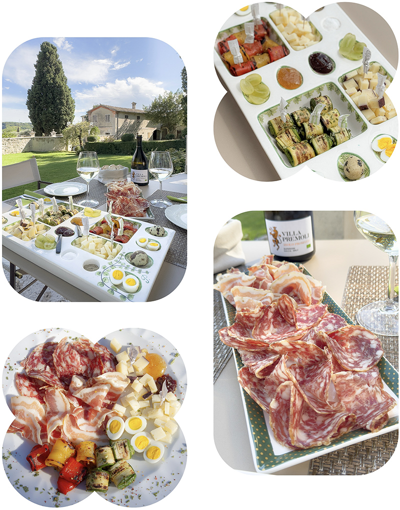 La cantina di Villa Premoli offre anche una selezione di piatti locali, in abbinamento al Prosecco Asolo DOCG Brut biologico.