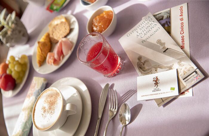 La colazione è allestita con cura nel soleggiato salone nobile della Villa, dove i prodotti del territorio sono proposti per un piacevole inizio di giornata. Al tramonto, un aperitivo in giardino degustando il Prosecco DOCG biologico di Villa Premoli allieterà in un piacevole momento di svago e di relax.